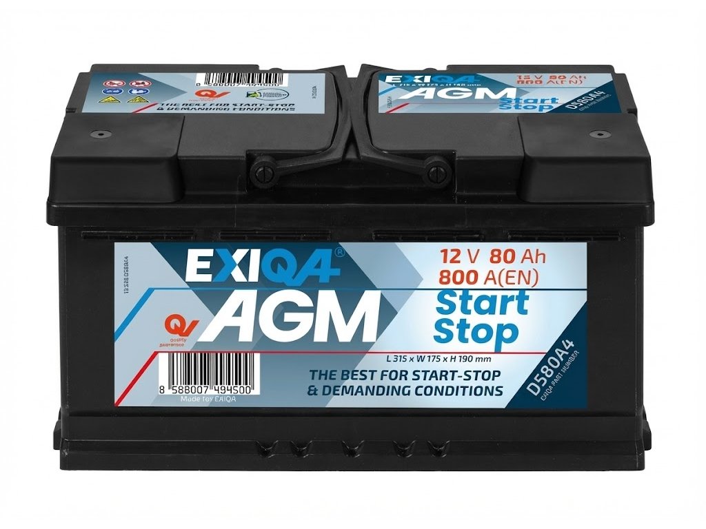Autobaterie Exiqa AGM 80Ah 800A – výkonná AGM baterie pro vozy se Start-Stop