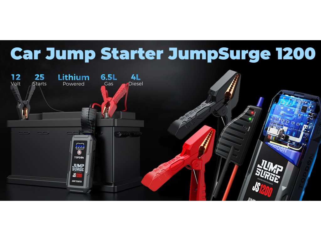 JumpSurge 1200 s kapacitou 10000 mAh (37 Wh) a proudem 1200 A nastartuje benzínové motory do 6.5 L a dieselové do 4.0 L během 2 vteřin.