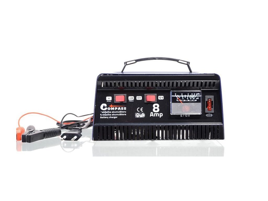 Celokov • Ampérmetr • 2 rychlostiCompass Nabíječka 8A 6/12V TÜV/GS METALLIC (Kat. č. 07148)