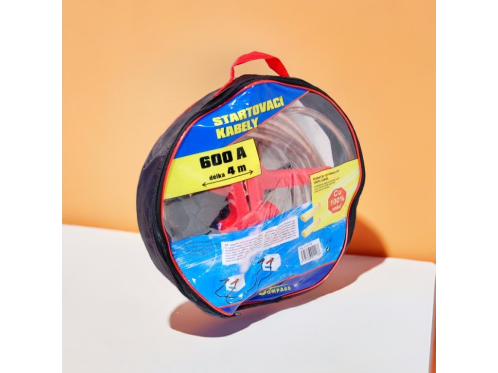 Extra silné startovací kabely s délkou 4 metry a celokovovými kleštěmi. Maximální startovací proud je 600 ampér. Kabel je vyroben ze 100% mědi a neobsahuje žádné přísady jiných kovů, které by snižovaly jeho účinnost.