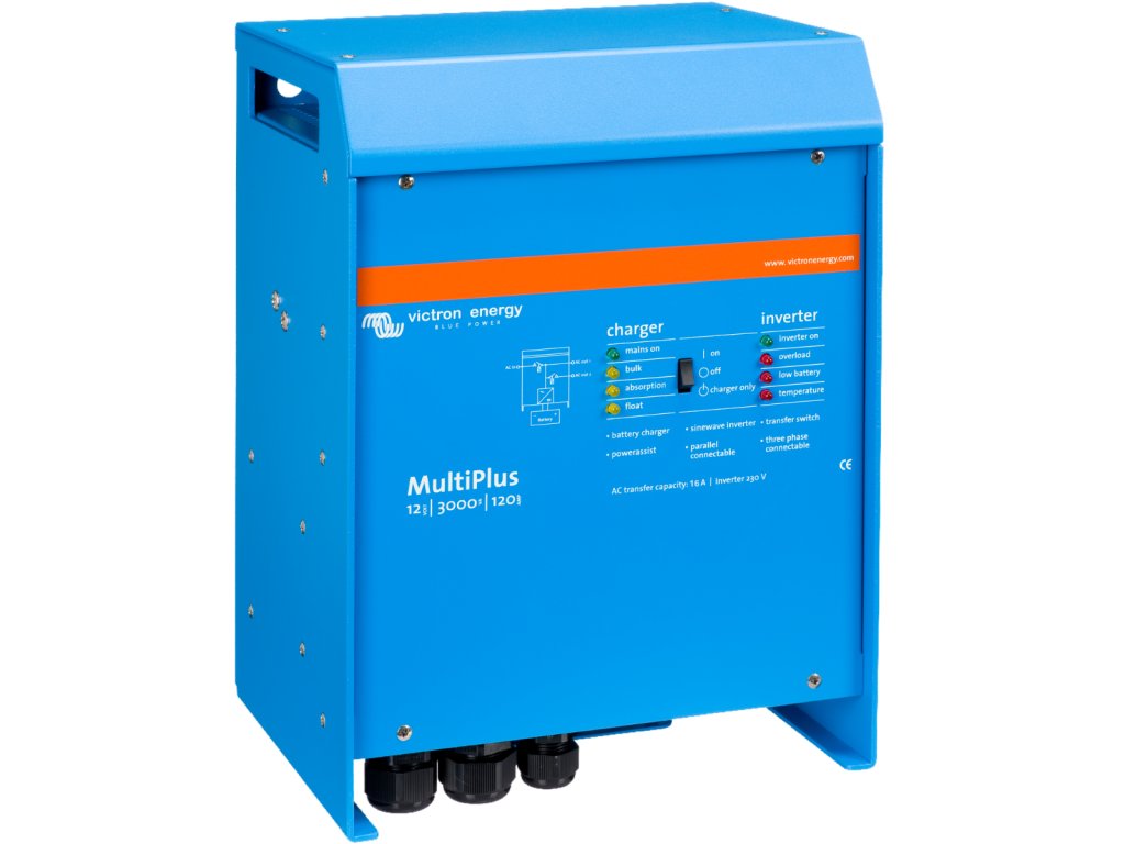 MultiPlus jak napovídá název, je kombinací střídače a nabíječky v jednom elegantním balení. Jeho řada funkcí zahrnuje čistě sinusový měnič, adaptivní nabíjení, technologii PowerAssist a další funkce pro integrace do různých typů systémů. Jeden AC vstupMultiPlus je vybaven jedním AC vstupem pro připojení distribuční sítě nebo např. generátoru.Pokud jsou potřeba dva AC vstupy, pak zvolíme jednotku Quattro. Dva AC výstupyMultiPlus je vybaven dvěma AC výstupy. Hlavní výstup AC1 zajistí dodávky energie bez přerušení. Např. v režimu UPS MultiPlus převezme napájení připojených spotřebičů (za méně než 20 milisekund) v případě výpadku distribuční sítě nebo generátoru.Druhý výstup je funní pouze tehdy, když je k dispozici AC vstup (distribuční síť/generátor). Zátěž, která by rychle vybila akumulátory, jako například ohřívač vody, je tedy možné připojit k tomuto výstupu a bude napájena pouze z AC zdroje (druhý výstup k dispozici u modelů s výkonem 3kVA a vyšší).Čtyři fáze nabíjení adaptivní nabíječkou a dvěma výstupy pro nabíjení baterieHlavní výstup poskytuje výkonné nabíjení akumulátorů prostřednictvím systému "adaptivního nabíjení". Software řídí třístupňový automatický proces dobíjení tak, aby vyhovoval stavu baterie, a přidává čtvrtou fázi dobíjení - udržovací nabíjení. Kromě tohoto, MultiPlus může nabíjet druhou baterii pomocí nezávislého výstupu dobíjení určeného např. pro startovací baterie generátoru. Multiplus je určen pro nabíjení všech typů olověných, alkalických i lithiových baterií. Prakticky neomezený výkon díky paralelnímu provozuAž 6 jednotek MultiPlus může pracovat paralelně k dosažení vyššího výkonu. Šest x 24/5000/120 měničů, například poskytuje 25 kW / 30 kVA výkon a 720 A nabíjecí kapacitu. Třífázový provozTři jednotky stejného typu mohou být konfigurovány pro třífázový provoz. Ale to není vše: až 6 setů tří jednotek lze paralelně propojit. Unikátní vlastnosti funkce PowerAssistMultiPlus zamezí přetížení výkonově omezeného AC zdroje např. proudově omezené el. přípojky. Pokud by mělo dojít k přetížení vstupního AC zdroje proudu, bude v prvé řadě automaticky snížen nabíjecí proud do baterie. V druhé řadě potom dochází k posílení výstupního AC proudu proudem odebíraným z baterie. Solární energieAC proud můžete mít k dispozici i v případě výpadku distribuční sítě.MuliPlus může být použit jak v off-grid (ostrovních) systémech, tak ve fotovoltaických systémech připojených k distribuční síti. MultiPlus není vybaven vstupem pro FV pole, je ale předurčen ke spolupráci s MPPT regulátory (DC coupling systémy) nebo síťovými měniči (AC coupling systémy). Konfigurace systému V případě samostatné např. UPS instalace, lze jednoduše nastavení provést během několika minut pomocí přepínačů DIP. Paralelní a třífázové aplikace mohou být konfigurovány pomocí softwaru VE.Bus Quick Configure a softwaru VE.Bus System Configurator. Off-grid a hybridní FV instalace pro vlastní spotřebu, které zahrnují síťové střídače nebo solární nabíječe MPPT, lze konfigurovat pomocí Asistenta (specializovaný software pro konkrétní aplikace). Softvare pro konfiguraci si můžete zdarma stáhnout na následujícím odkazu (VE.Configure 3): https://www.victronenergy.com/support-and-downloads/software Pro uvedený SW budete potřebovat PC komunikační rozhraní MK3-USBVzdálený monitoring a konfigurace systémůSledujte a ovládejte svůj systém lokálně (LAN) nebo vzdáleně přes internet z libovolného místa na světě pomocí bezplatné aplikace VRM a bezplatného portálu VRM. https://vrm.victronenergy.com/landingpagePřístup může být z tele:fonu, tabletu, notebooku nebo počítače pro různé operační systémy. Neexistuje žádný konec úrovně ovládání, pomocí jednoho z následujících ovládacích panelů máte k dispozici monitoring a konfiguraci systému odkudkoliv na světě. MultiPlus nabízí mnoho variant provozu a jsme schopni nabídnout řešení na řadu uživatelských požadavků. Zde uvádíme pro představu nejčastější provozní režimy: Režim ESS – Energy Storage SystemTento režim je pouze pro fotovoltaické instalace s dostupnou distribuční sítí (DS), požadavkem na maximální využití vyrobené solární energie v kombinaci s běžnou DS a s možností ukládání přebytečné energie do baterií. Podrobný manuál k ESS systému naleznete na následující odkazu: https://www.victronenergy.com/live/ess:design-installation-manualPříklady konfigurace ESS systémů: 1. Klasická síťová elektrárna doplněná o ukládání energie Jakmile měřák zaznamená dodávku do distribuční sítě (dále jen DS), ESS systém začne ukládat přebytečnou energii do baterie. Jakmile měřák sítě zaznamená nákup energie z distribuční sítě, systém ESS dodává energii z baterie do zátěže. V případě výpadku DS fotovoltaika nejde a kritické spotřebiče (ve schématu „Critical Loads) jsou napájeny z AC výstupu jednotky MultiPlus/Quattro – to zajistí, že nám baterii vybíjí jen prioritní spotřebiče a neprioritní jsou odpojeny. 2. Energii z FV panelů zpracovává MPPT solární regulátor. Toto řešení je vhodnější zejména pro menší instalace a výhodou je vyšší účinnost – DC energie z FV je ukládána přímo do DC baterie. Oproti předchozímu příkladu dosahuje vyšší účinnosti proto, že není potřeba DC proud zpracovávat na AC pomocí síťového střídače a následně je znovu převádět z AC na DC pro uložení do baterie - to způsobuje ztráty 20-30%. V případě výpadku DS (blackoutu) jsou opět napájeny pouze kritické spotřebiče, ale FV systém zůstává plně funní a pra