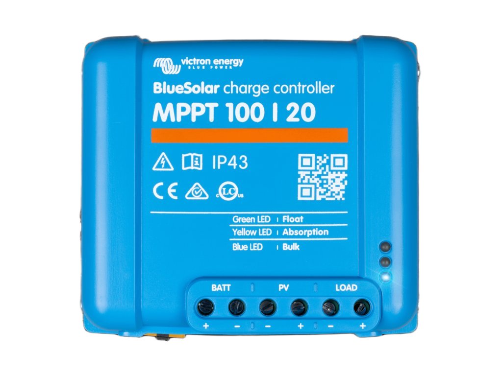 MPPT solární regulátor Victron Energy BlueSolar 100/20 je výkonné řešení pro 12V/24V solární systémy v karavanu, na lodi i v off-grid instalacích. Rychlé MPPT sledování maximalizuje výkon panelů i při proměnlivém počasí a šetrně dobíjí baterii s ochranami proti přebití a přetížení. Podporuje běžné olověné baterie (WET/AGM/GEL) a umožňuje nastavení dobíjení podle použité technologie; pro monitoring lze doplnit Bluetooth/VE.Direct příslušenství.