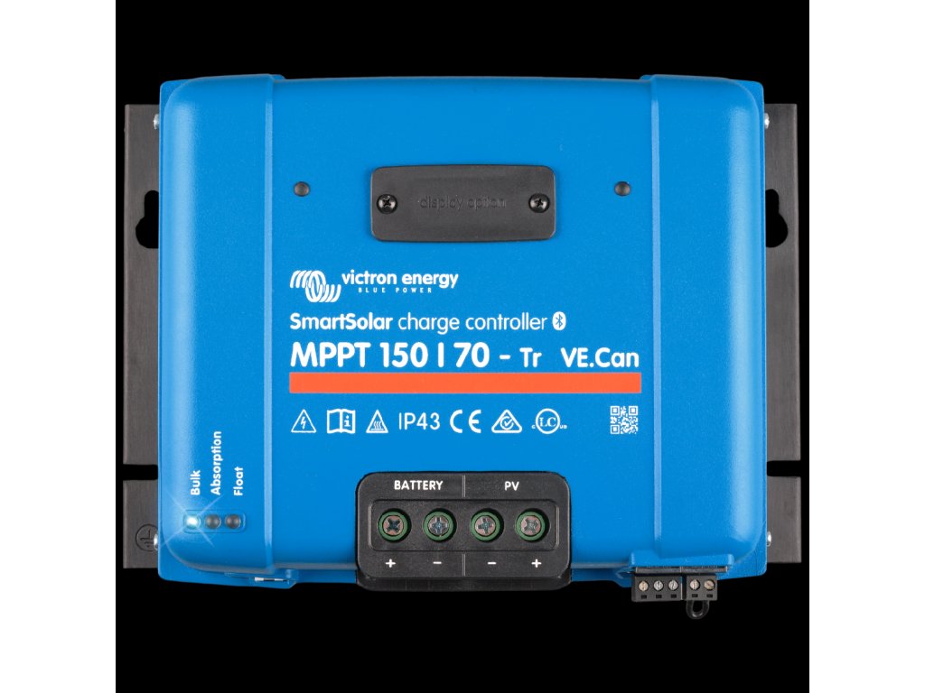 Solární regulátor SmartSolar zpracovává energii ze solárních panelů a ukládá ji do baterií, maximalizuje solární zisky, inteligentně udržuje stav baterie a prodlužuje její životnost. Solární regulátor SmartSolar umí dobít i silně vybitou baterii, protože může pracovat s napětím baterie až 0 voltů za předpokladu, že články nejsou trvale sulfatovány nebo jinak poškozeny. Hlavní vlastnosti:Ultra rychlá MPPT technologie:Regulátor neustále sleduje napětí a proud ze solárních panelů a díky technologii MPPT z nich získává maximum energie, což je zvláště výhodné při proměnné intenzitě slunečního záření. MPPT technologie zajišťuje až o 30 % vyšší zisk energie ve srovnání se solárními regulátory PWM a až o 10 % vyšší zisk ve srovnání s pomalejšími regulátory MPPT.Vzdálený monitoring a ovládání:Pokud je vaše instalace připojena k internetu pomocí zařízení GX, portál VRM poskytuje přístup vašim zařízením kdykoli a kdekoli. Vestavěný Bluetooth:Solární regulátor SmartSolar můžete díky vestavěnému Bluetooth spárovat s vaším chytrým telefonem nebo jiným zařízením přes aplikaci VictronConnect a nastavovat, monitorovat, nebo aktualizovat systém.VE.Direct konektor:VE.Direct slouží k připojení k zařízení GX, PC nebo jiným zařízením.VE.Can porty:Dva porty RJ45 VE.Can regulátorů, umožňují komunikaci mezi více produkty Victron. S podporou VE.Can lze regulátory připojit k různým zařízením, jako jsou: Zařízení GX - pro monitorování a ovládání. Více solárních nabíječek VE.Can - pro synchronizované nabíjení. Více solárních nabíječek VE.Can, dalších produktů VE.Can a/nebo zařízení GX – pro řadu aplikací.Vynikající účinnost konverze:Regulátor má vynikající účinnost konverze. Maximální účinnost přesahuje 98 %. Jednou z výhod vysoké účinnosti je, že regulátor nemá chladicí ventilátor a maximální výstupní proud je zaručen až do okolní teploty 40 °C (104 °F).Další vlastnosti: přirozené pasivní chlazení automatické rozpoznání napětí baterie ochrana proti přehřátí a snížení výkonu při vysoké teplotě flexibilní nabíjecí algoritmus vnitřní teplotní senzor kompenzuje teplotu absorpce a udržovacího nabíjecího napětí volitelné externí snímání napětí baterie a teploty přes Bluetooth smart Battery Sense nebo BMV-712 Smart Battery Monitor lze použít k vyčítání napětí baterie a teploty jednoho nebo více SmartSolar regulátorů funkce obnovy zcela vybité baterie zahájí nabíjení, i když je baterie úplně vybitá znovu se připojí k plně vybité Li-ion baterii s integrovanou funkcí odpojeníTechnické parametry: napětí baterie (automatická volba): 12/24/48 V nabíjecí proud: 70 A FV max: 12 V: 1000 W / 24 V: 2000 W / 48 V: 4000 W maximální napětí FV naprázdno: 150 V maximální efektivita: 98 % provozní teplota: -30 to +60 °C terminály: 35 mm² / AWG2 (Tr models) třída ochrany: IP43 (elektronické komponenty), IP22 (konektory)Upozornění:MPPT regulátory Victron Energy není povoleno používat v kombinaci s optimizéry fotovoltaických panelů. Při použití může dojít k poškození MPPT regulátorů i optimizérů a toto poškození nemusí být uznáno jako oprávněná reklamace.Bližší informace a další technické údaje najdete v manuálu a datasheetu v sekci "Ke stažení".Na produkty Victron Energy poskytuje výrobce záruku 5 let.