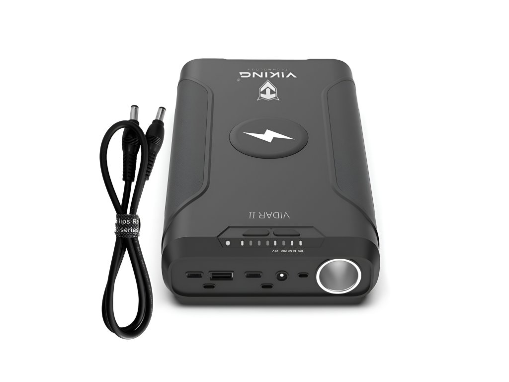 Powerbanka Viking VIDAR II je spolehlivý pomocník pro každého, kdo potřebuje mít energii vždy po ruce – ať už na vícedenním kempování, při práci v terénu nebo na cestách. S kapacitou 72000 mAh, kompaktními rozměry a širokým výběrem výstupů pohodlně nabijete více zařízení současně – od mobilních telefonů přes notebooky až po 12V spotřebiče.