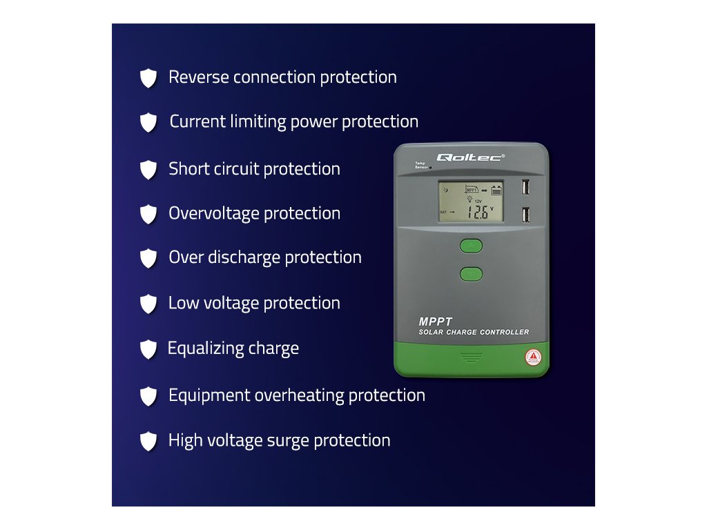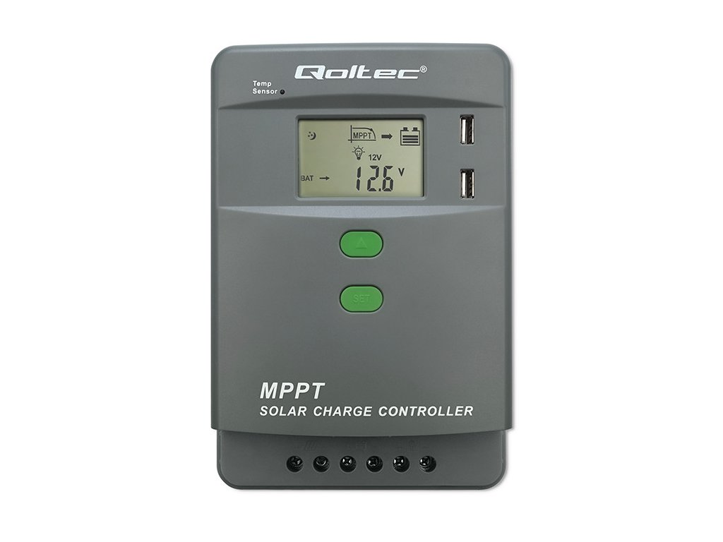 Qoltec MPPT 40A | 12/24V | LCD | BT | 2× USB | GEL / LiFePO4