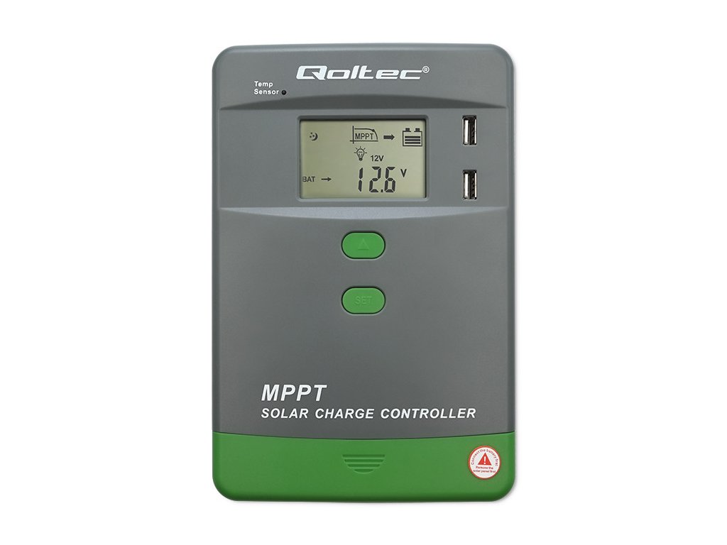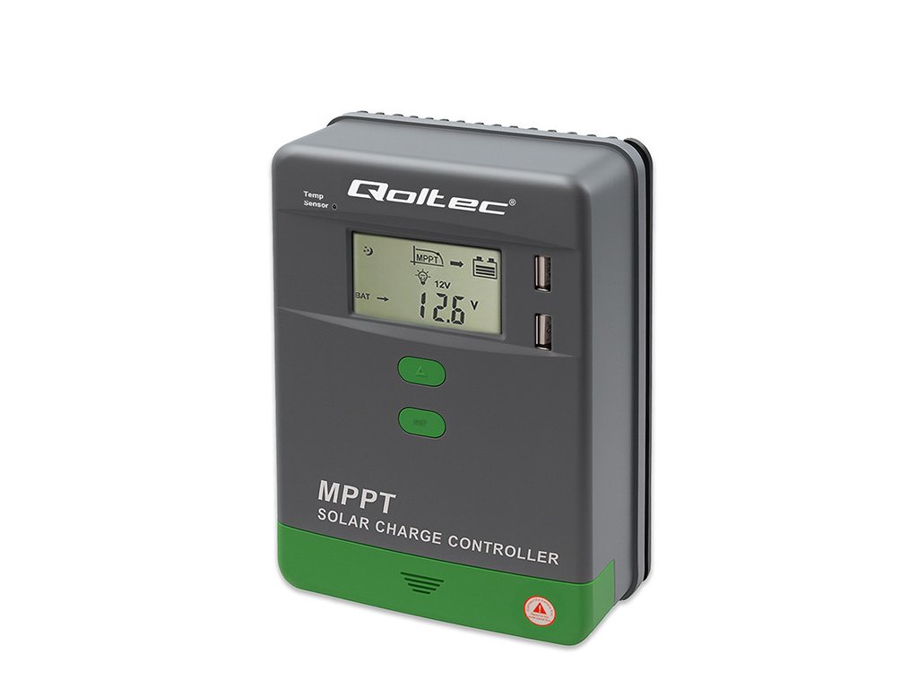 Qoltec MPPT 10A | 12/24V | LCD | BT | 2× USB | GEL / LiFePO4