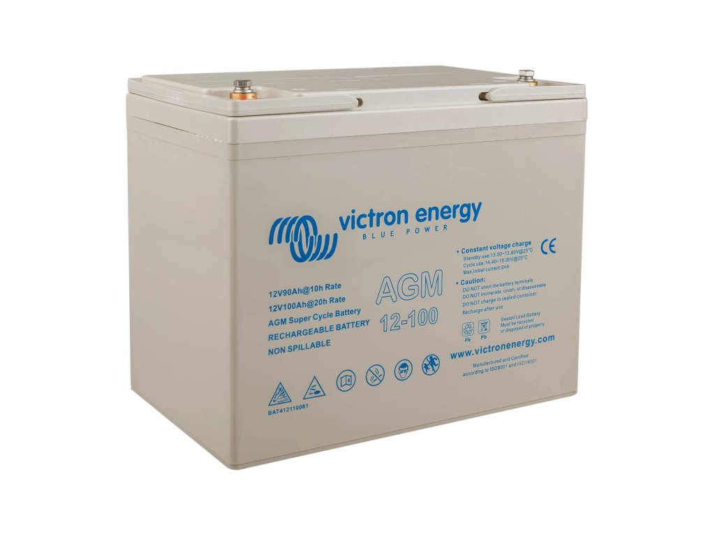 Solární baterie Victron Energy AGM Super Cycle 100Ah – hlubokocyklická, bezúdržbová, spolehlivá volba pro ostrovní solární systémy a karavany.