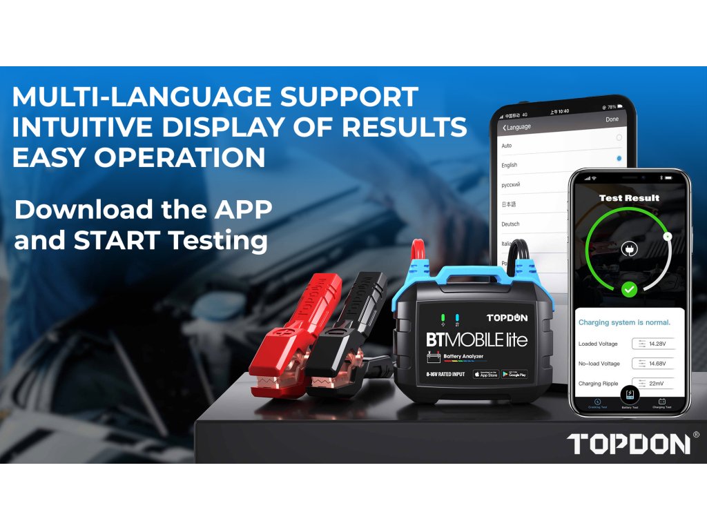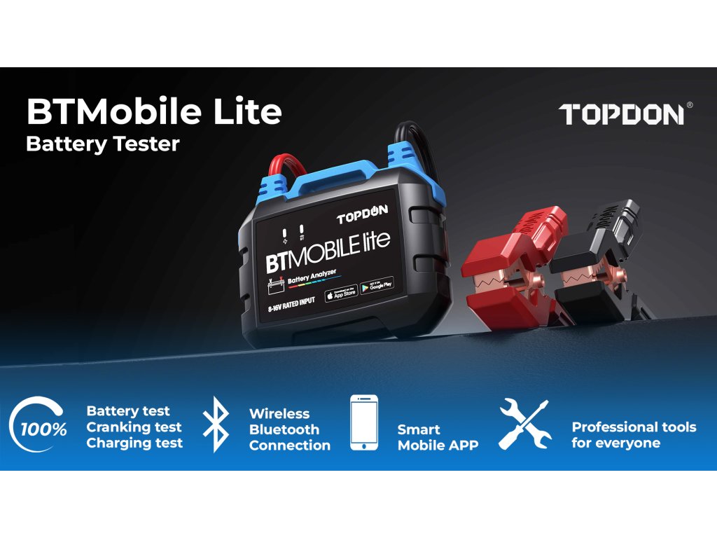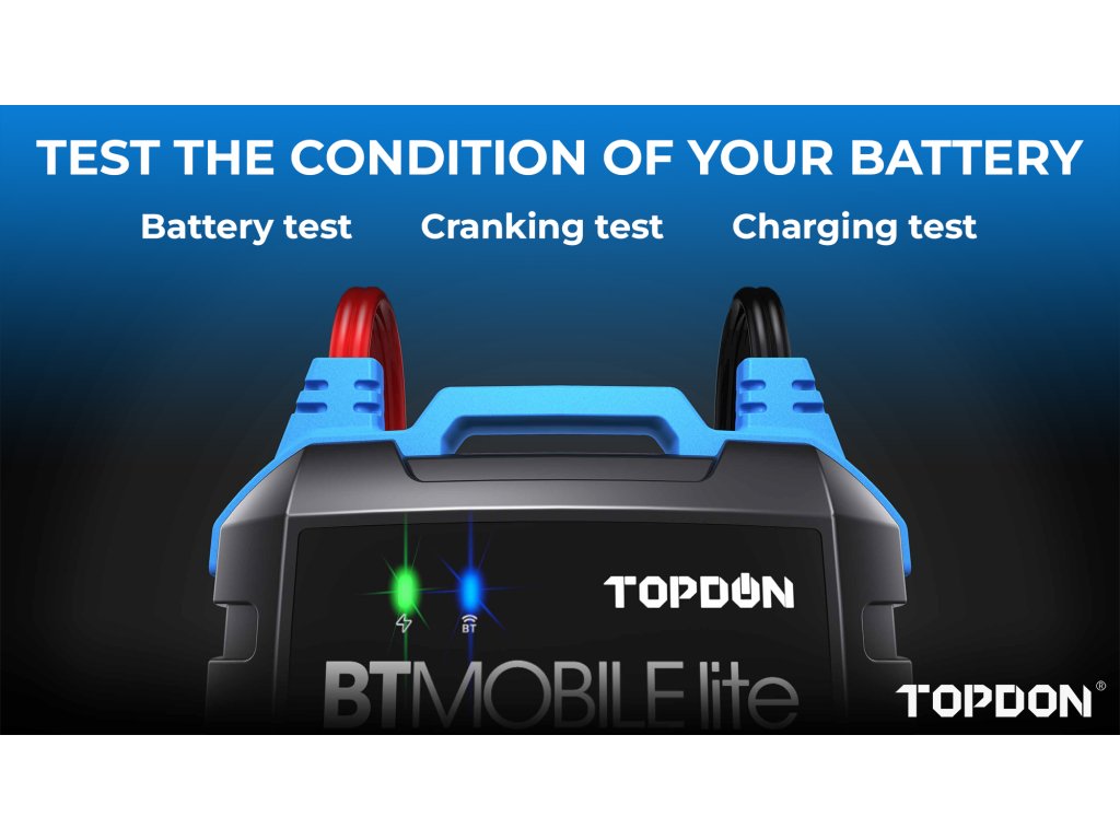 Tester baterií TOPDON BT Mobile Lite poskytne technikům, profesionálům i domácím kutilům důležité informace o stavu baterie tím, že rychle a přesně identifikuje problémy s baterií a nabíjením.