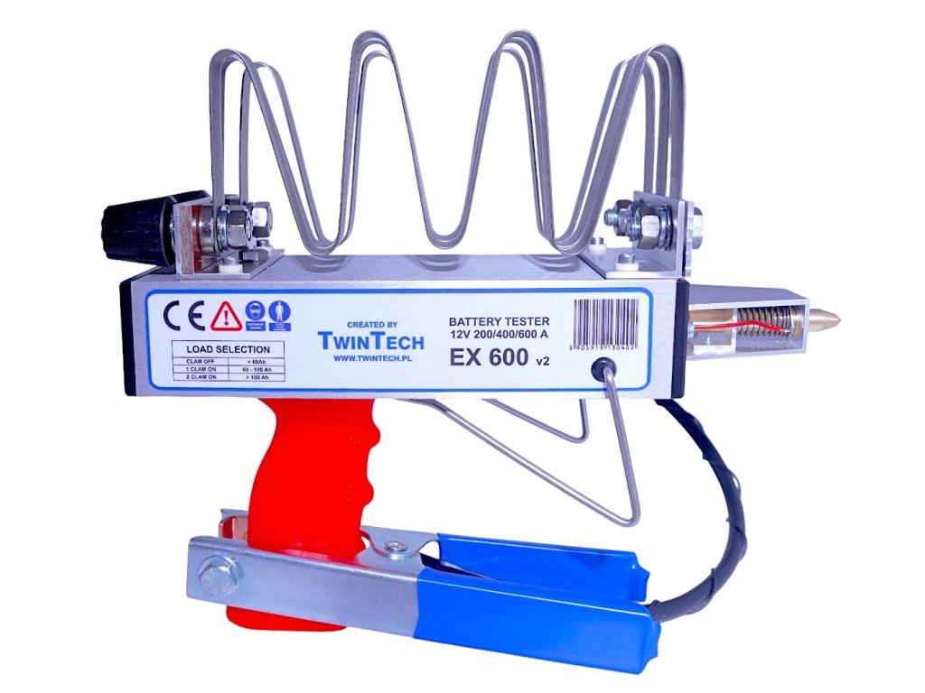 Tester EX600 je určen k zátěžové zkoušce startovacích akumulátorů 6 V a 12 V. Nabízí přesné měření napětí (rozlišení 0,01 V, odchylka ±0,5 %) a volbu zátěžového proudu až 600 A pro 12V baterie a 300 A pro 6V baterie. Přístroj je napájen 9V baterií s odběrem pouze 2 mA a je navržen pro spolehlivý provoz v širokém teplotním rozsahu.